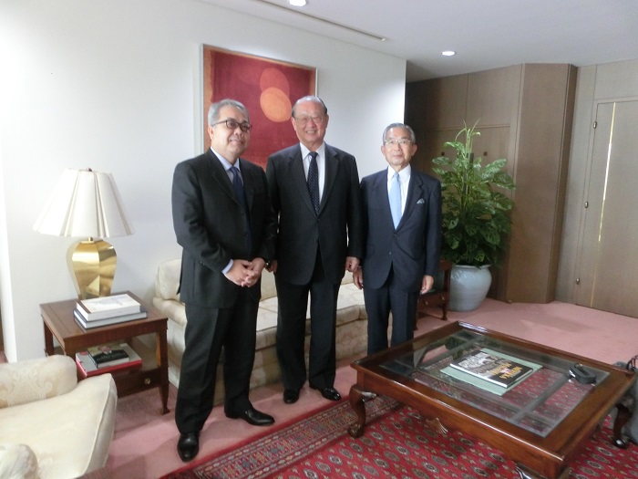 ダト・アハマッド・イズラン・ビン・イドゥリス駐日マレーシア大使、松澤建FEC理事長、湯下博之FEC専務理事