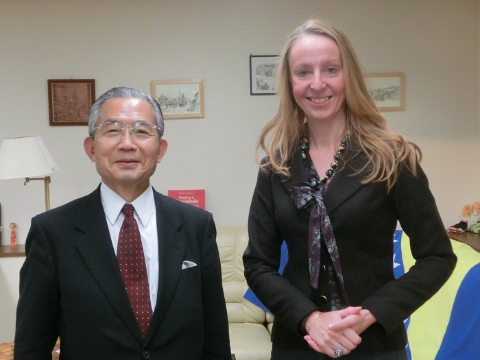 クンドウロビッチ駐日ボスニア・ヘルツェゴビナ大使と湯下専務理事との面談 日欧文化経済委員会 2014年12月12日更新 とき 平成26年(2014)12月10日(水) 15時~15時40分 ところ 在日ボスニア・ヘルツェゴビナ大使館 参加者・ゲスト等 アネッサ・クンドウロビッチ駐日ボスニア・ヘルツェゴビナ大使、湯下博之FEC専務理事