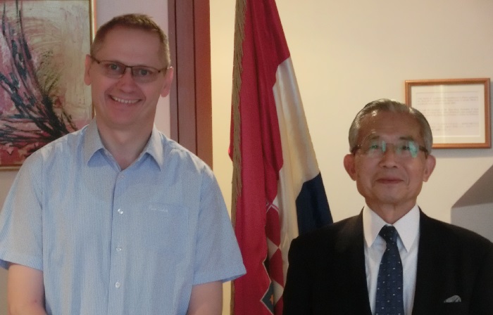 湯下博之FEC専務理事は、ドラジェン・フラスティッチ駐日クロアチア大使を訪問した。クロアチア国防省で総局長まで勤めた後2003年に外務省に移籍し、05~07年のアフガニスタンNATO文民代表部参事官や、日本に先立つ駐トルコ大使を経て15年12月に駐日大使として赴任した大使は、きびきびした態度で、着任後1年半余りになる経験を踏まえて、両国関係について語った。