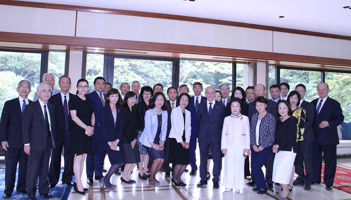 その後、出席者一同は大使公邸へ移動し、スタラーチェ大使と記念撮影をとり名刺交換を行った。スタラーチェ大使は、「日本とイタリアは多くの分野で交流が深まっている、両国間の貿易・投資も活発で、特に今年前半はイタリアの対日輸出が急増している。友好的な日伊関係の更なる発展により両国の関係が強化されることを期待したい」と歓迎の挨拶をした。