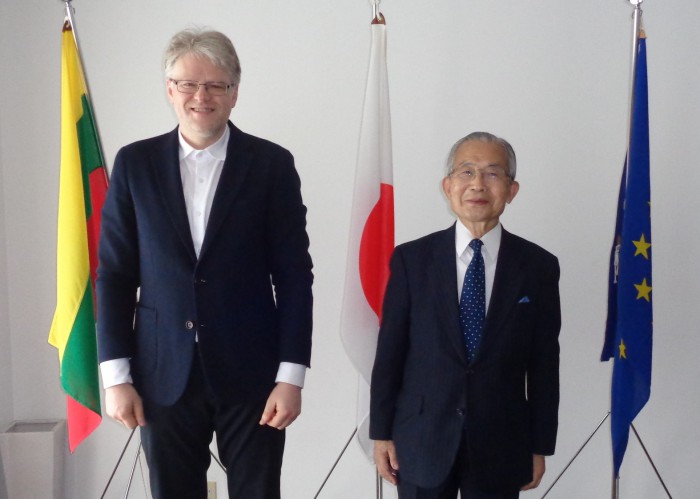 湯下博之専務理事は、オーレリウス・ジーカス駐日リトアニア大使を訪問した。大使は、ヴィータウタス・マグヌス大学(芸術学部)卒業後、同大学政治学部で修士課程次いで博士課程を修了するとともに、その間、金沢大学(日本研修生)、早稲田大学(商学部)に留学し、更に、三度にわたり国際交流基金の研修に参加した日本通で、日本語が流暢である。2019年には日本の外務大臣表彰を受けている。ヴィータウタス・マグヌス大学講師、アジア研究センター所長、准教授を勤め、その間Azija LT社々長やカウナス市日本友好協会々長も勤めた。リトアニア政府から駐日大使に任命され、22年5月に着任した。