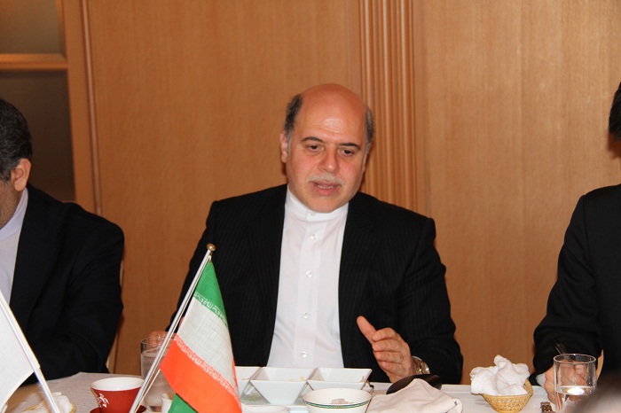民間外交推進協会(FEC)は11月21日(金)、レザー・ナザルアーハリ駐日イラン大使を招き、「イラン最新情勢と日本-イラン関係の今後の展望」をテーマに第63回中東研究会をホテルオークラで開催した。開会に際して、須藤隆也FEC日・中東文化経済委員会顧問(公益財団法人日本国際問題研究所軍縮・不拡散促進センター・シニアアドバイザー)から、「現在、核協議の最終合意に向けて協議が進んでいる。地域情勢では、イスラム国が勢力を伸ばしているが、この問題はイランの協力なしには解決出来ない。イランの重要性が増す中、本日は大使よりイランの最新情勢を伺えることを楽しみにしている。」と委員会代表挨拶があった。ナザルアーハリ大使は、昼食を共にしながら「私の名前でもあるアハルは地域名であり、大変気候が良いところ。さくらんぼが有名で、甘酸っぱい柑橘類も取れ、そのほとんどがオーガニックである。イランでも4月には桜が咲く。」と和気藹々とした話をし、その後、核協議の展望などタイムリーな話題を交え、イランの最新政治情勢や日本とイランの最近の関係、日本への要望について講演を行った。講演後、ナザルアーハリ大使は出席者からの質問に答え、最後に出席者と名刺交換を行った。