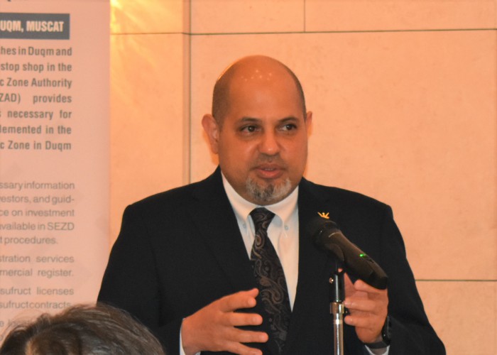 フォーラムでは初めに松澤建FEC理事長が「本日はオマーン文化フォーラムのご案内をしたところ、多数の方々の出席を頂き感謝申し上げる。オマーンはペルシャ湾の重要な戦略的要衝であると共に、長い歴史や素晴らしい文化においても大変輝かしい国であることは皆様よくご存知の通りだ。今回の文化フォーラムを通じてオマーンを更に理解し、両国の相互理解の一助になれば幸いだ。本日の文化フォーラム開催に尽力して頂いたアル・ブサイディ大使閣下と大使館の皆様に改めて御礼申し上げる」と開会挨拶を行った。続いてアル・ブサイディ大使が「オマーン大使館へようこそ。オマーンと日本は非常に親しく友情を育んできた国同士だ。オマーンは政治的にも外交的にも強力、且つ影響力のある国だ。本日はオマーンのコーヒーとお菓子を召し上がりながらプレゼンテーションをご覧いただきたい」と歓迎挨拶を行った。その後、大使自らがオマーンの文化についてプレゼンテーションを行った。プレゼンテーションではオマーンの文学・美術・音楽・料理・建築・生活様式に至るまで事細かに映像と共に説明された。参加者は皆興味深くプレゼンテーションを聞いている様子で、オマーンに対する関心の高さが伺われた。その後、質疑応答が行われ、留学生、UAEとの飛び地、郷土料理に関する質問に対し、大使は丁寧に回答をされた。最後に大使を交え集合写真を撮影し幕を閉じた。