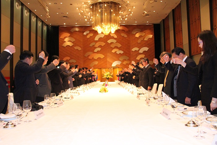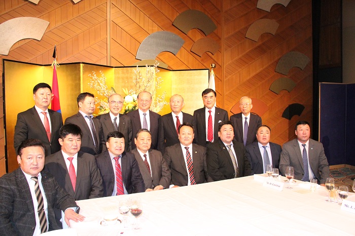 民間外交推進協会(FEC)は1月26日、同日に来日したモンゴル国県知事一行をお迎えし、歓迎夕食会をホテルニューオータニで開催した。夕食会にはモンゴル側からフレルバータル駐日大使、ガンホヤグ・ドルノゴビ県知事、バトソーリ・スフバータル県知事をはじめモンゴル全21県中20県の知事・副知事等23名、FEC側からは松澤建FEC理事長、湯下博之FEC専務理事、伊藤直彦FEC日モンゴル文化経済委員会委員長(日本貨物鉄道(株)相談役)等17名が出席した。一行は、安倍総理が重要課題と位置付ける「地方創生」を日本から学ぶことを目的に来日。夕食懇談では、モンゴル側から各県のアピールや日本の地方自治体との関わりについて説明があり、日本側からは各参加企業のモンゴルにおける取り組みや、今後のモンゴルとの協力関係等について和やかな雰囲気で意見交換を行った。最後に記念品交換と写真撮影を行い、参加者全員で一本締めで閉会した。