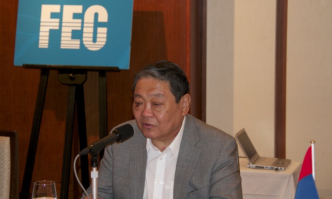 FECは9月9日、ソドブジャムツ・フレルバータル駐日モンゴル国大使を招き、「新政権の動向と日・モンゴル協力関係の展望」をテーマに第6回モンゴル研究会を帝国ホテル東京で開催した。 開会に際して、伊藤直彦・FEC日モンゴル文化経済委員会委員長(日本貨物鉄道㈱名誉顧問)が、「フレルバータル大使閣下には今まで何度もお話を伺っているが、モンゴルについて、また、モンゴルと日本の関係について極めて率直かつ明解にお話をされる方である。本日は大変参考になると思う。6月の選挙で政権が変わり、9月25日からの第4次モンゴル訪問団でモンゴルを訪問する際、新しい閣僚の方々ともお会いするチャンスがあると思う。今後のモンゴルと日本の関係を1歩でも、2歩でも進めるという気持ちで行ってきたい。」と主催者としてあいさつをした。続いてフレルバータル大使がモンゴルの総選挙、新政権について、モンゴルと日本の関係の現状と将来展望について講演を行った。その後、ダワージャルガル参事官より、新政権の閣僚の紹介や、新政権の目標と課題などについて、スライドを用いて具体的な説明があった。