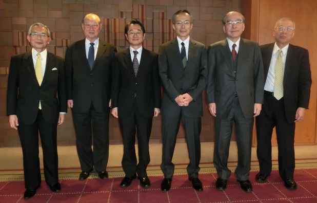 FECの松澤建理事長と湯下博之専務理事は12月14日、帝国ホテル東京にて、、伊藤直彦FEC日モンゴル委員会委員長(日本貨物鉄道㈱名誉顧問)と城所卓雄FEC日モンゴル委員会顧問(元駐モンゴル大使・名古屋大学特任教授)の同席のもと、清水武則・前駐モンゴル大使と高岡正人・新駐モンゴル大使を招き、食事会を催した。前大使にモンゴル訪問団をはじめ任期中にお世話になったことへの感謝の辞を述べると共に、新大使に新任のお祝いと今後のさらなる協力をお願いし、歓談のひとときをともにした。