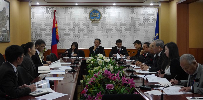 滞在中、初めに在モンゴル日本大使館を訪問し、ブリーフィングJ.エルデネバト首相への表敬訪問が実現したほか、大臣級ではB.チョイジルスレン大蔵大臣、G.ムンフバヤル建設・都市計画大臣、T.ダシドルジ鉱業・重工業大臣、J.バトソーリ教育・文化・科学・スポーツ大臣、B.バヤルサイハン国家開発庁長官との意見交換が行われた。また、FEC会員である㈱東横インがウランバートルに建築中のホテル見学、日系企業の賛光グループモンゴルの視察を行い、モンゴルの最新現地事情を把握した。