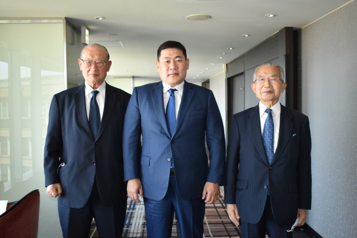 ロブサンナムスライ・オヨーンエルデネ・モンゴル国首相を松澤FEC理事長らが表敬訪問 日モ文化経済委員会 2022年12月06日更新 とき 2022年9月27日(火) ところ 都内ホテル 内容 FECの松澤理事長と湯下専務理事は9月27日、安倍元首相の国葬に参列のため訪日中のロブサンナムスライ・オヨーンエルデネ・モンゴル国首相に都内のホテルで表敬した。 オヨーンエルデネ首相はフレルスフ前首相(現大統領)時代に内閣官房長官として内閣を支えていたが、2021年1月に首相に就任して以降、初めての日本訪問となった。