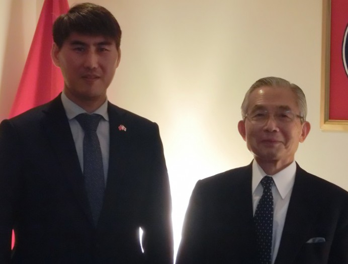 チンギス・アイダルベコフ駐日キルギス大使を湯下FEC専務理事が表敬訪問 国別・地域別委員会 2018年09月26日更新 チンギス・アイダルベコフ駐日キルギス大使 とき 平成29(2017)年12月12日(火) ところ 在日キルギス共和国大使館 内容 湯下博之FEC専務理事は、チンギス・アイダルベコフ駐日キルギス大使を訪問した。キルギス共和国は1991年に独立、日本は同年に国家の承認を行い、翌92年に外交関係を開設した。