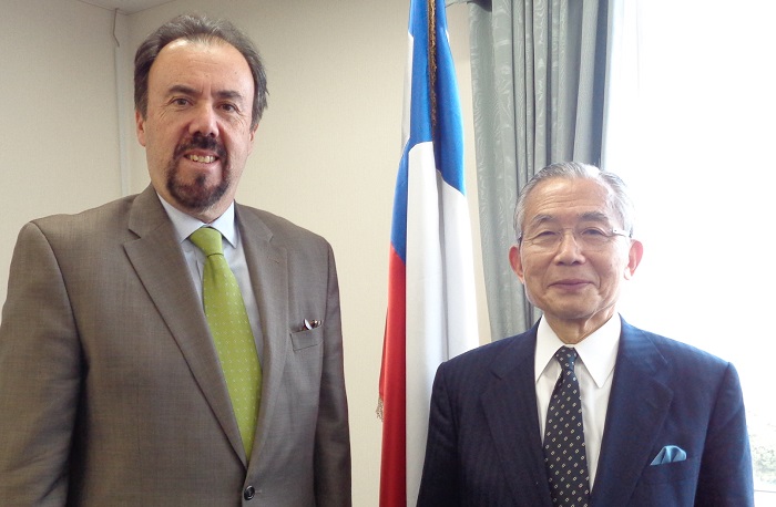 フリオ・フィオル駐日チリ大使を湯下FEC専務理事が表敬訪問 国別・地域別委員会 2019年04月11日更新 フリオ・フィオル駐日チリ大使 とき 平成31(2019)年3月6日(水) ところ チリ共和国大使館 内容 湯下博之FEC専務理事は、フリオ・フィオル駐日チリ大使を訪問した。大使は国連をはじめとする国際機関や米国、メキシコ、イタリア勤務、外務省北米・中米・カリブ諸国局局長、在米国大使館次席を歴任した外交官で、2018年12月に来日した。