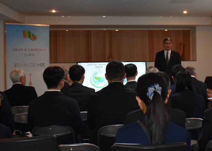 FECは4月4日、第15回中央アジア・コーカサス研究会(トルクメニスタン文化フォーラム)をトルクメニスタン大使館で開催した。松澤建FEC理事長の開会挨拶の後、アタドゥルディ・バイラモフ駐日トルクメニスタン大使が歓迎の挨拶と講演を行った。続いて大使館職員が映像を交えながらトルクメニスタンの基本情報や文化(民族衣装、伝統料理、特産品、祭り、観光地、世界遺産、自然、動物など)を紹介した。質疑応答の後には大使のご厚意により準備されたトルクメニスタンの料理が振る舞われ、参加者と大使館関係者が交流を深めた。