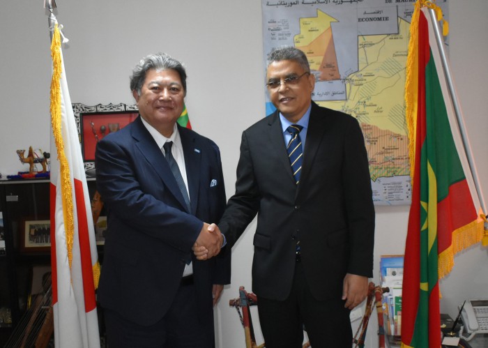 小方専務理事は、アブデラヒ・ケブドゥ駐日モーリタニア・イスラム共和国大使を訪問した。大使はヌアクショット大学法学部(モーリタニア)を経て、オレルアン大学法学部(フランス)にて法学修士号を取得。グルノーブル政治学院(IEP)にて政治学上級学位(DEA)を取得後、モーリタニア大統領府担当官としてキャリアをスタート、駐米、駐チュニジア、駐スペインの参事官を経て、駐イタリア一等参事官および特命全権大使並びにローマに拠点を置く国連機関の代理代表(食糧農業基金(FAO)、国連食糧計画(WFP)、国際農業基金(IFAD)、駐ニジェール総領事、駐ブラジル大使、駐ベルギー大使(管轄国:デンマーク、フィンランド、アイスランド、ルクセンブルグ、ノルウェー、オランダ、スウェーデン、EU、NATO、OPCW)を歴任し、2024年5月大統領選挙に向けた選挙運動中のガズワニ候補の広報担当者を経て2025年5月に着任した。