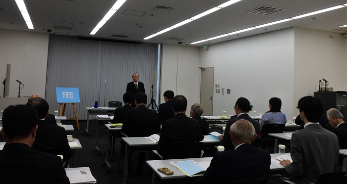 まず、松澤建FEC理事長が「外交関係樹立45周年という記念すべき年に訪問団が成果を挙げ無事に帰国したことは大変喜ばしい。FECでは毎年ベトナムに訪問団を派遣しており、今回の訪問団も外務省や日本大使館員の方々に多くのご協力をいただき、充実した面談ができた。今後も両国の絆が益々重要となり、日本と相手国との相互の発展に努力していきたい。最後に今回で連続8回の団長を努めていただいた電源開発㈱中垣喜彦名誉顧問に敬意と感謝を申し上げる」と挨拶した。