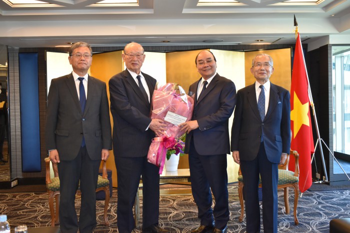 グエン・スアン・フック・ベトナム社会主義共和国国家主席を松澤FEC理事長らが表敬訪問 日越文化経済委員会 2022年12月06日更新 とき 2022年9月27日(火) ところ 都内ホテル 内容 FECの松澤建理事長、湯下博之専務理事、ならびに尾ノ井芳樹FEC日越文化経済委員会委員長(電源開発(株)代表取締役副社長執行役員)は9月27日、安倍元首相の国葬に参列するために訪日したグエン・スアン・フック・ベトナム社会主義共和国国家主席を都内のホテルで表敬した。