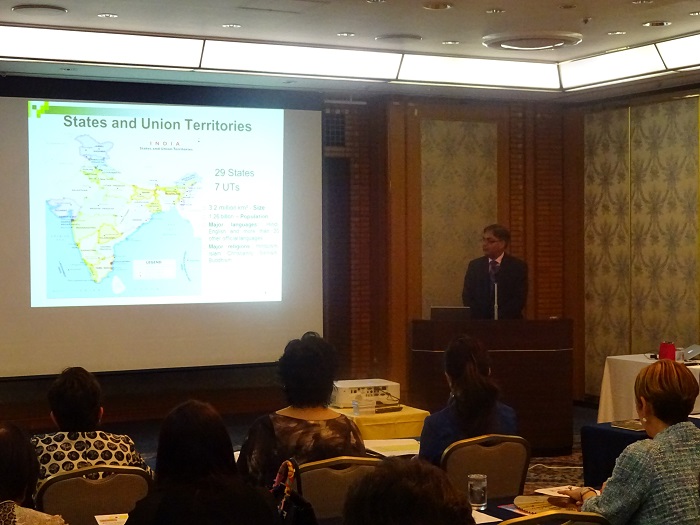 講演に先立ち、インド紹介の短編映画が上映され、クマール主席公使から、第1部「インドの概要紹介」、第2部「インドにおける女性の地位向上」という二部構成で講演があった。第1部ではスライドを使いながら、意外と知られていないインドという国の概要について、また第2部ではインドにおける女性の社会進出の歴史と今後の課題について、それぞれ説明があり、講演後活発な質疑応答がなされた。