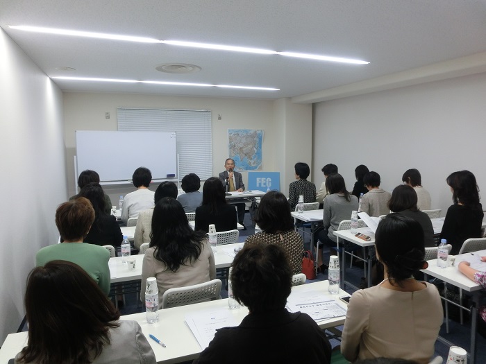 民間外交推進協会(FEC)の東京LFEC(女性会員)は10月7日、湯下博之FEC専務理事を講師に迎え『海洋法、領土、領海問題』をテーマに本年度第2回目のフォーラムを開催した。会員の間では日頃より日本の領土や領海の問題への関心が高く、今回のテーマも湯下専務が外務省条約局において海洋法副本部長を務めた経験があることから会員側からの要望で決まったものである。石井利枝東京LFEC代表幹事からの挨拶に続いて、湯下博之FEC専務理事より、海洋法の変遷と現状、日本の領土問題について講演がなされた。