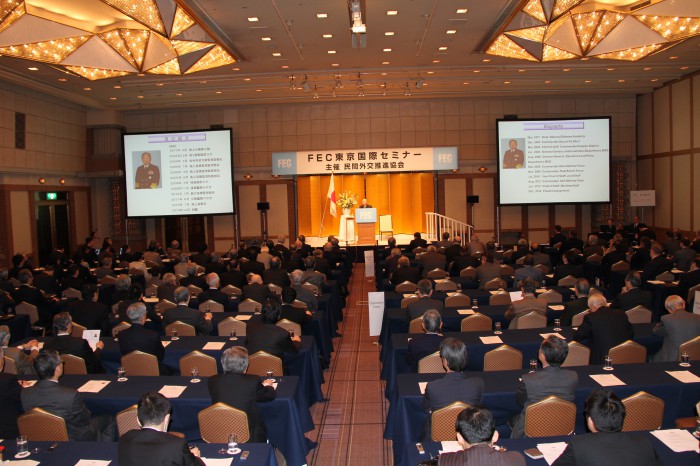 FECは3月23日、陸・海・空の自衛官の最高位者である河野克俊統合幕僚長をお迎えして、第2回FEC東京国際セミナーを帝国ホテルで開催した。セミナーには、FEC会員のほか、外交関係者、駐日外交団、報道関係者ら約150人が出席した。