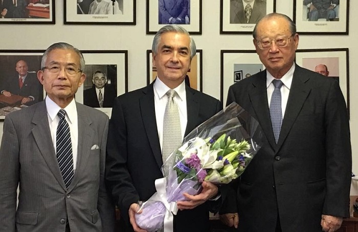 メキシコ大使館を松澤建FEC理事長と湯下博之専務理事が弔問 国内の催し 2017年11月24日更新 カルロス・アルマーダ大使(中央) とき 平成29(2017)年9月27日(水) ところ 在日メキシコ合衆国大使館 内容 9月27日、松澤建FEC理事長と湯下博之専務理事はメキシコ合衆国大使館を弔問し、19日(日本時間20日)に発生した大地震の被災者を追悼し、カルロス・フェルナンド・アルマーダ・ロペス大使に哀悼の意を表した。