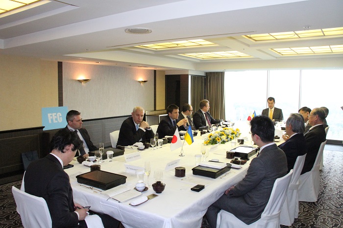 FECは3月3日、外務省賓客として訪日中のパウロ・クリムキン・ウクライナ外務大臣をお迎えし、歓迎昼食会をホテルニューオータニで開催した。昼食会にはウクライナ側からハルチェンコ駐日大使、セニク外務大臣官房長ほか2名、FEC側からは松澤建FEC理事長、齋藤宏FEC副会長・みずほフィナンシャルグループ名誉顧問、湯下博之FEC専務理事、関丈太郎アイテック㈱代表取締役社長等6名が出席した。