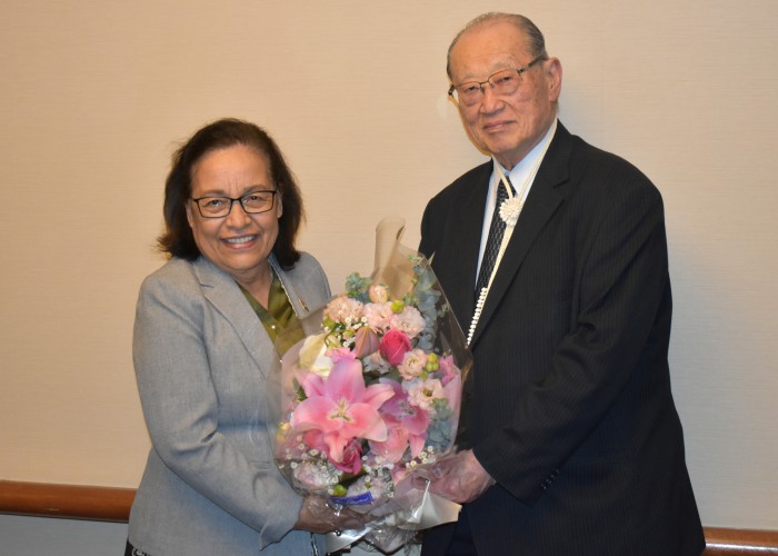 ヒルダ・ハイネ・マーシャル諸島共和国大統領を松澤理事長が表敬訪問 活動報告 2025年05月23日更新 とき 2025年03月11日(火) ところ 都内のホテル 内容 民間外交推進協会(FEC)の松澤建理事長は3月11日、都内のホテルでマーシャル諸島共和国のヒルダ・ハイネ大統領を表敬訪問した。来日を歓迎する挨拶のあとFECの活動について説明し、今後の交流について意見を伺った。