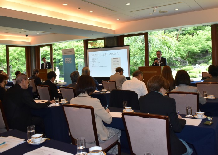 杉田弘毅・共同通信社客員論説委員(明治大学特任教授)を招き、第290回国際研究会を開催 国際研究会 活動報告 2025年07月01日更新 とき 2025年05月15日(木) ところ 国際文化会館 内容 FECは5月15日、杉田弘毅共同通信社客員論説委員(明治大学特任教授)を迎え、「トランプ政権はなぜ関税を課すのか」をテーマに第290回国際研究会を国際文化会館にて開催した。松澤建FEC理事長の開会挨拶の後、杉田氏が講演を行い、最後に質疑応答が行われた。