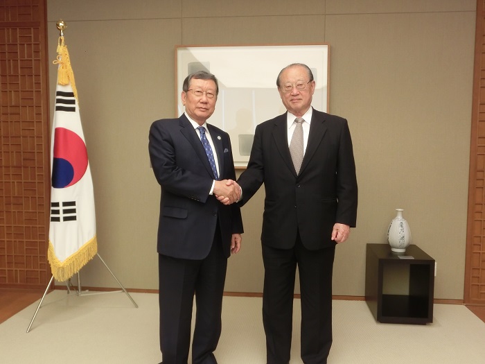 柳興洙駐日韓国大使と松澤理事長との面談 地域別委員会 2015年12月01日更新 とき 平成27年(2015)10月6日(火) 10時30分~11時 ところ 大韓民国大使館 参加者・ゲスト等 柳興洙駐日韓国大使、松澤建FEC理事長
